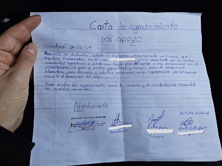 Erg indrukwekkend was de ontvangst van een dankbrief van het gemeentecomité van Huacahuasi, waarin de impact van HoPe op de gezondheid en veiligheid van kinderen werd benadrukt dankzij initiatieven zoals het brandwondencentrum, groentekassen en seksuele educatie.