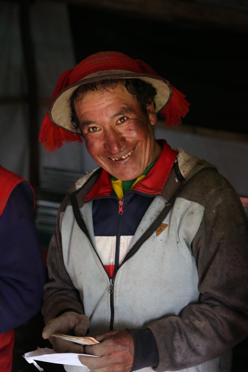 De boomkwekerij in Chaullacocha geeft aan veel mensen werk. Zo hebben in de afgelopen twee maanden zeker 50 families aardige inkomsten daaruit gehad. De man op de foto is één van de deelnemers aan het project. Hij heeft zojuist zijn salaris ontvangen.