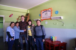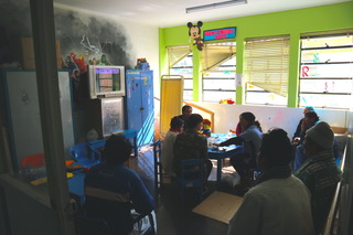 Om 10 uur hebben we met Julio afgesproken bij het Hospital Regional op de Avenida Cultura. We staan voor de hoofdingang te wachten, waardoor we al een kleine indruk krijgen van dit ziekenhuis. De hoofdingang is druk en rommelig. Wij wachten lekker buiten waar de zon net begint te schijnen. Op een gegeven moment begint iedereen flink te juichen. Peru heeft gescoord, ze spelen tegen Australië op het WK voetbal waar ze zich sinds 36 jaar weer voor hebben gekwalificeerd. Julio komt er aan en we gaan naar binnen, naar de 2e verdieping, afdeling quemaduras (brandwonden). De deur van deze afdeling zit op slot. Nadat we binnengelaten zijn lopen we gelijk door naar het achterste kamertje. Hier brengen kinderen en ouderen hun vrije tijd door. De kinderen zijn met kraaltjes aan het knutselen en de volwassenen kijken naar de voetbalwedstrijd die nog steeds bezig is.